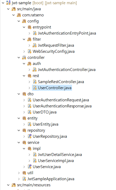 User에 관련된 Controller, Service, Repository(DAO)등 필요한 Class들을 생성하겠습니다.