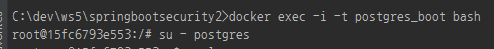 위의 명령어를 실행하게 되면 postgres_boot 라는 컨테이너 안으로 들어오게 됩니다.