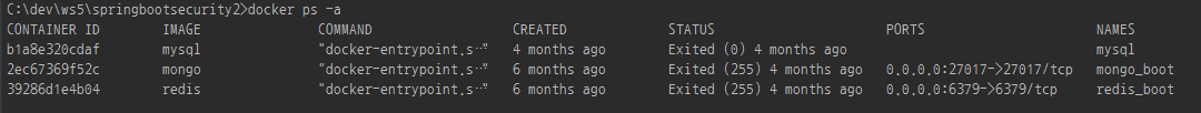 docker ps -a 명령어로 삭제 되었는지 확인해봅시다.
