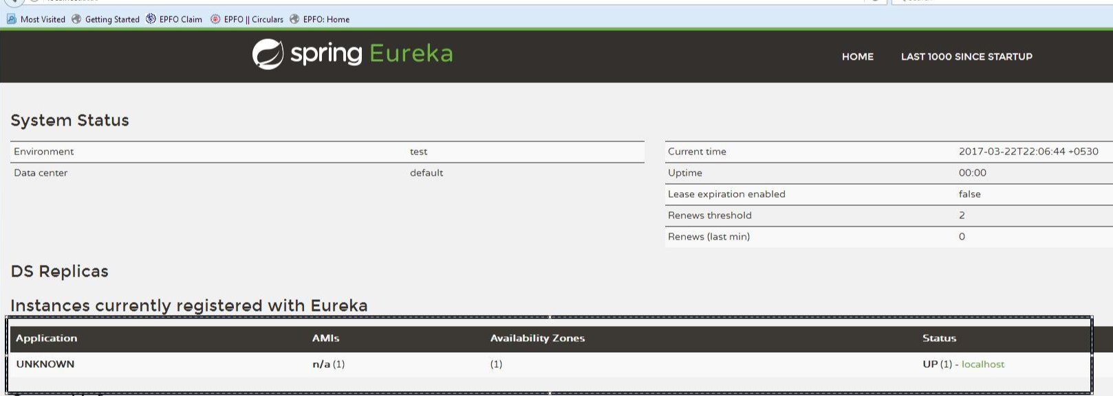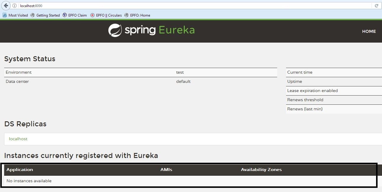 Eureka Server를 Run 후 http://localhost:8761/ 로 이동하게 되면