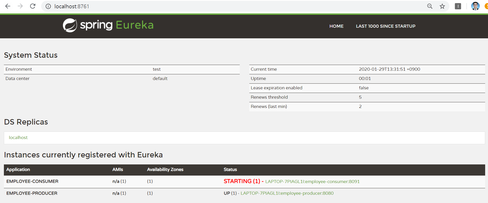 이제 employee-producer, employee-consumer, eureka-server 모듈들을 Run 하여 확인해 보겠습니다.
