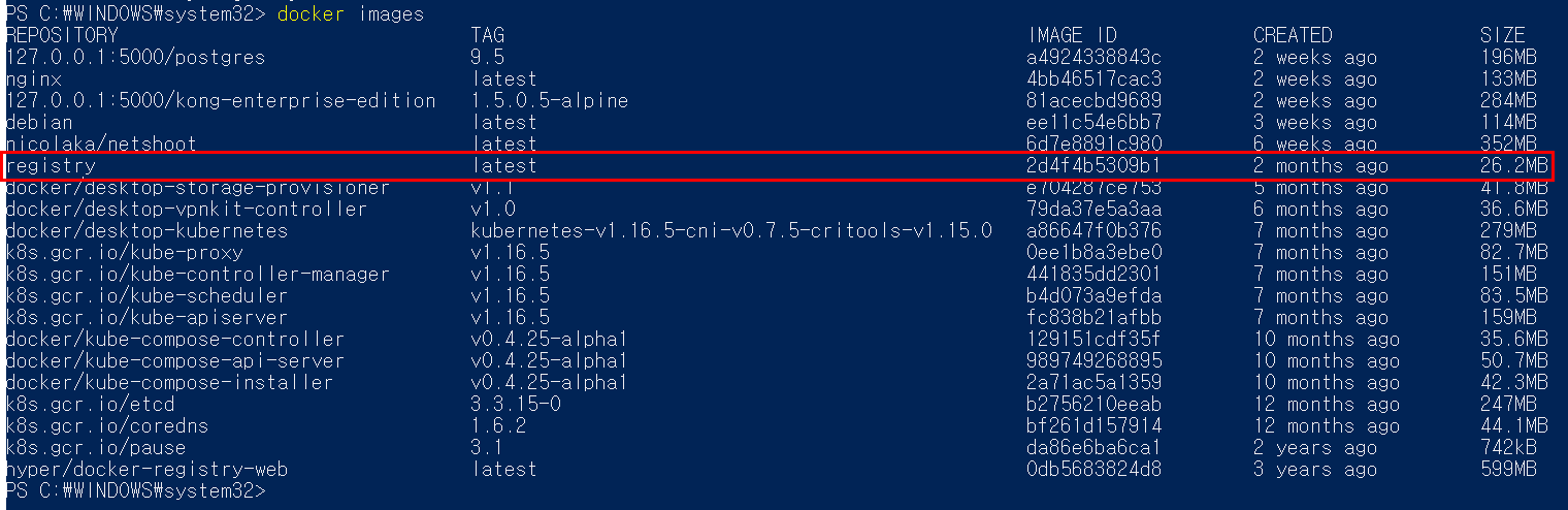 registry라는 name으로 컨테이너가 동작하고 있습니다.