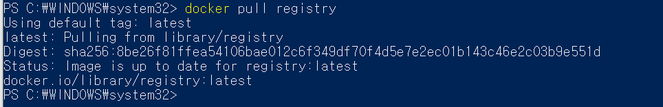 먼저 docker registry를 구성하기 위해 registy image를 받겠습니다.