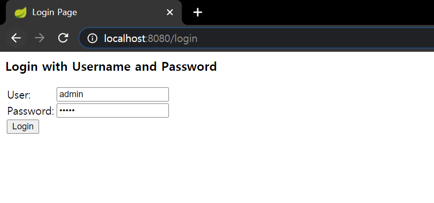 Get Employee info버튼을 클릭하면, Resource Server(포트 8080)의 기본 spring security login form 화면이 뜨게됩니다.