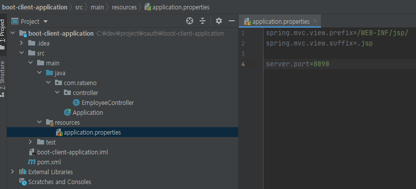 spring boot client application - client_id(ratseno)와 secret_key(secret)를 이미 발급받은것을 전제로 합니다.