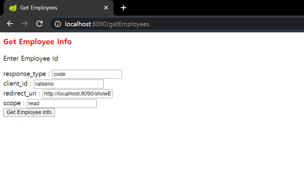redirect_uri : <input type="text" name="redirect_uri" value="http://localhost:8090/showEmployees" />