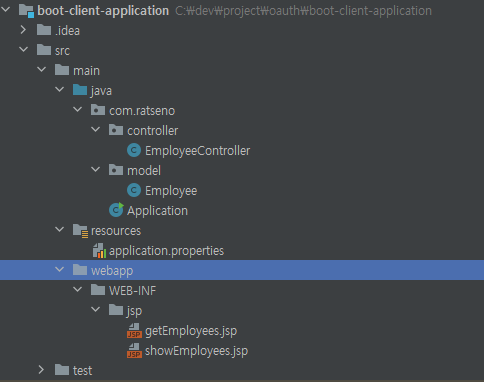 boot-client-application 프로젝트에 해당 Controller를 작성합니다.(EmployeeController 수정)