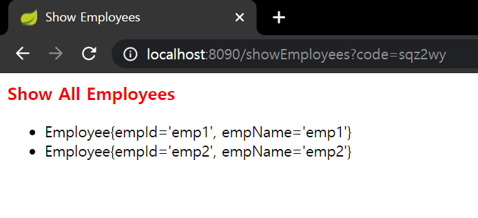 public ModelAndView showEmployees(@RequestParam("code") String code)throws JsonProcessingException, IOException {