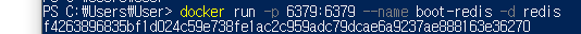 -실행중인 컨테이너 boot-redis와 상호작용하고(-i) 명령어는 redis-cli로 redis와 접근