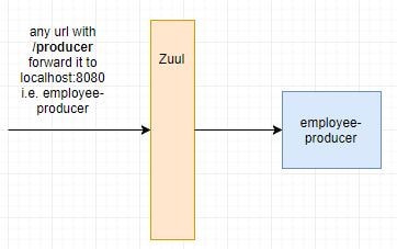 여기에 Zuul을 적용하게 되면 아래와 같은 모습으로 Zuul을 통하여 employee-producer에 통신을 하게 됩니다.